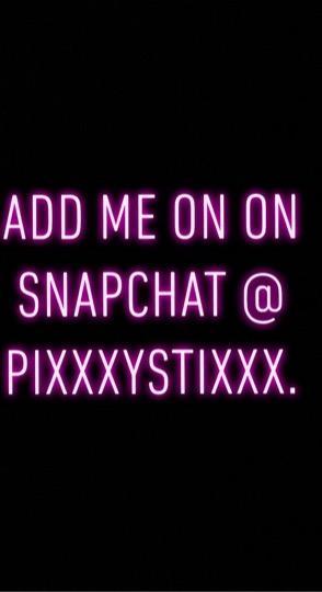 I adore what I do and have a great sense of fun and excitement. I can indulge you in your deepest desires without embarrassment or judgement. I am intelligent, accomplished, fun and friendly. I love to laugh and I don't take life too seriously :)WHAT TO EXPECT: Our mutual enjoyment is my primary goal and I will always do my absolute best to exceed your expectations. I am committed to making our time together an unforgettable experience for you.Add me on Snapchat @ pixxxystixxx
